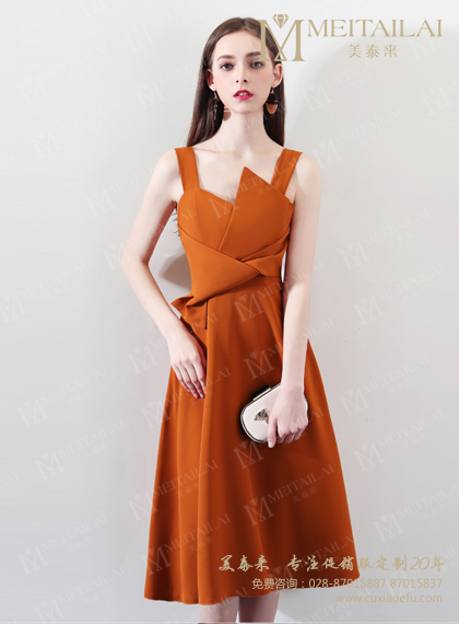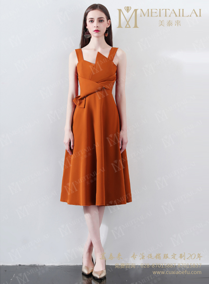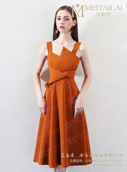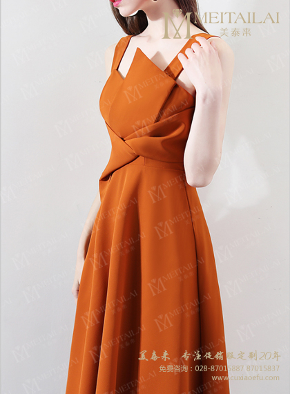 新款糖酒会收腰露肩褶裙款促销服